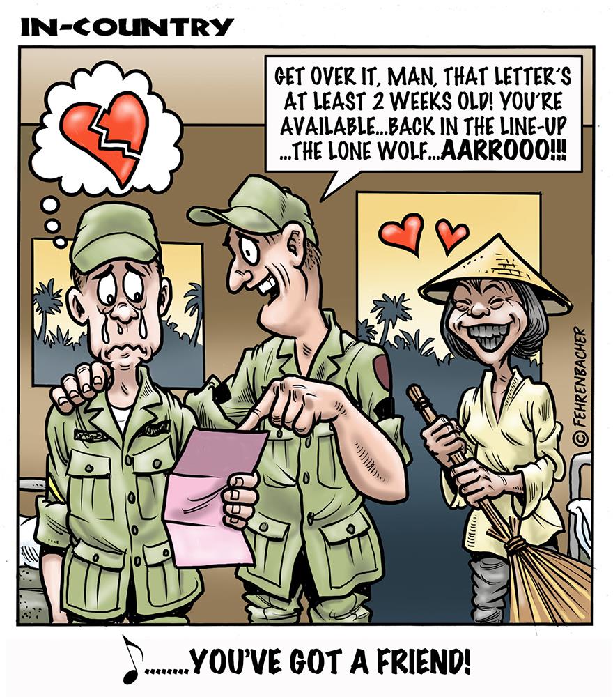 Phil enlisted in the Army in 1965 where he served for years in Vietnam.  He became a graphic designer and has worked for the state of Oregon for 26 years.  He retired in 2003 and started the Cartoon "In-Country".  The cartoons reflect his experiences during his tour of duty in South Vietnam.